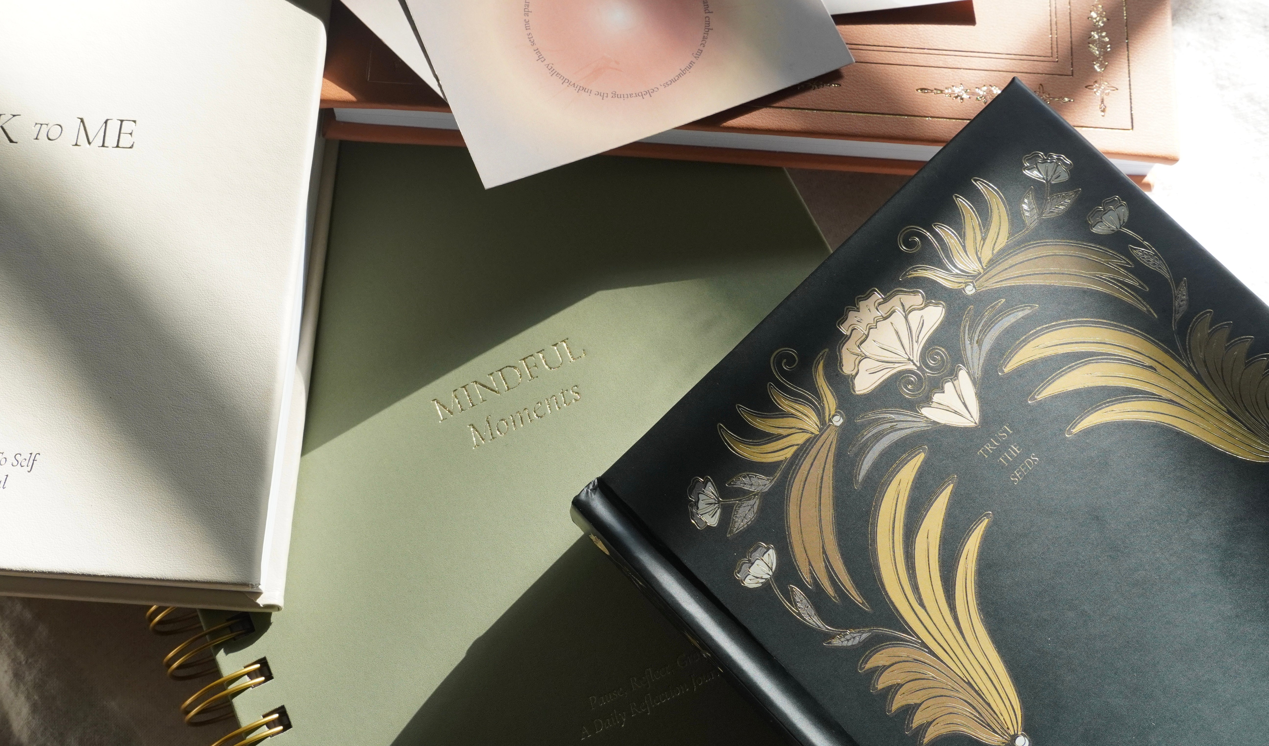 Our range of journals, notebooks, and affirmation cards are thoughtfully designed to encourage positivity, self-reflection, and personal growth.