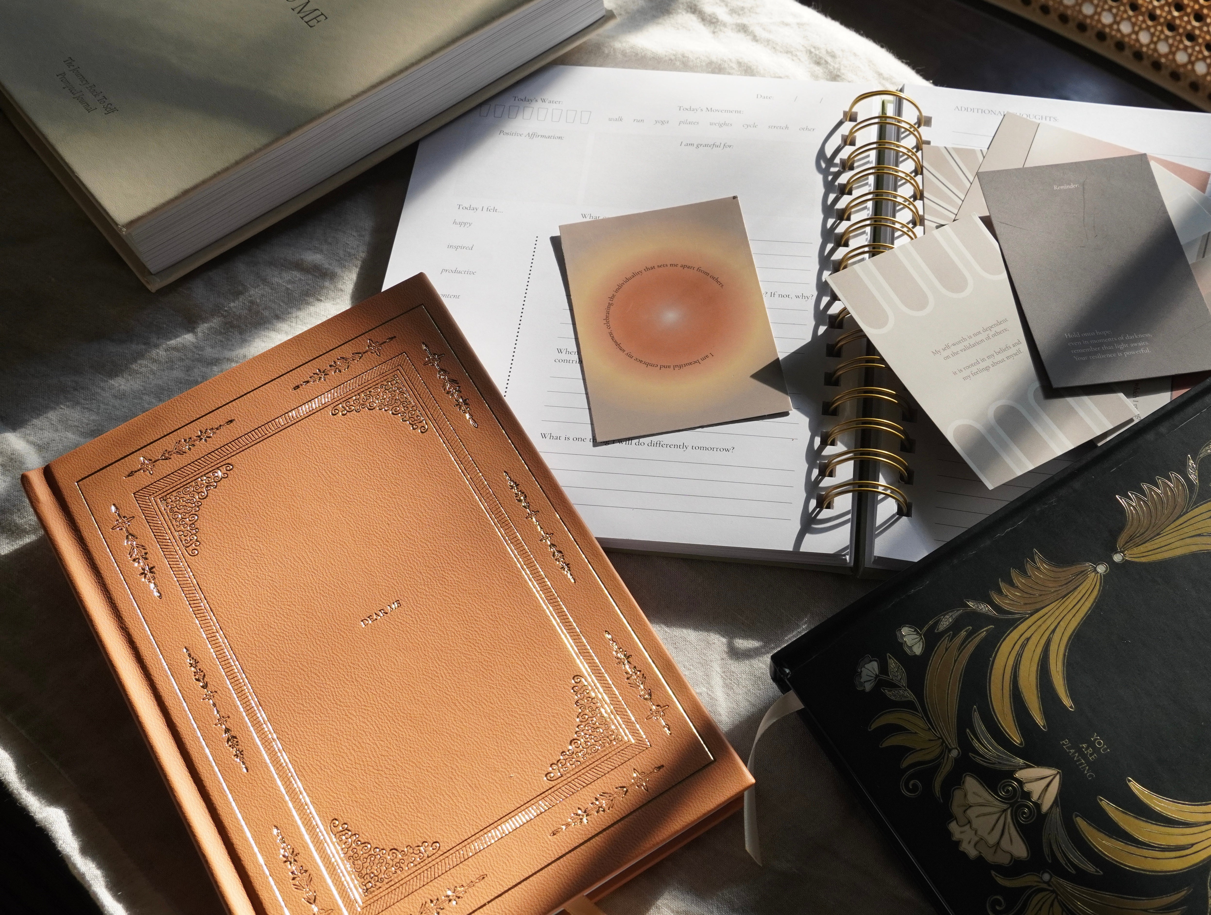 Our range of journals, notebooks, and affirmation cards are thoughtfully designed to encourage positivity, self-reflection, and personal growth.